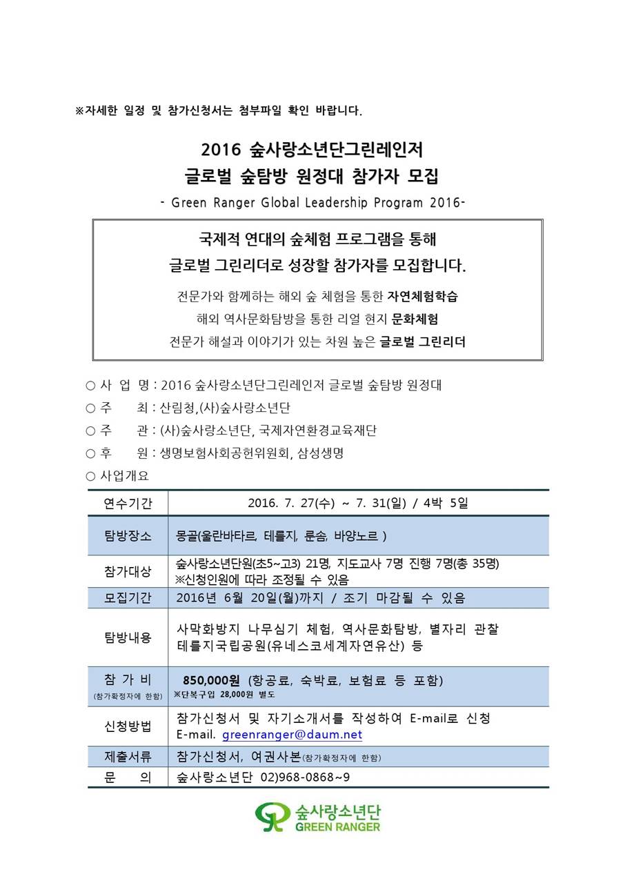 ⦁ 첨부파일 2016글로벌숲탐방원정대계획(최종).hwp (공문)글로벌숲탐방원정대참가자모집.pdf