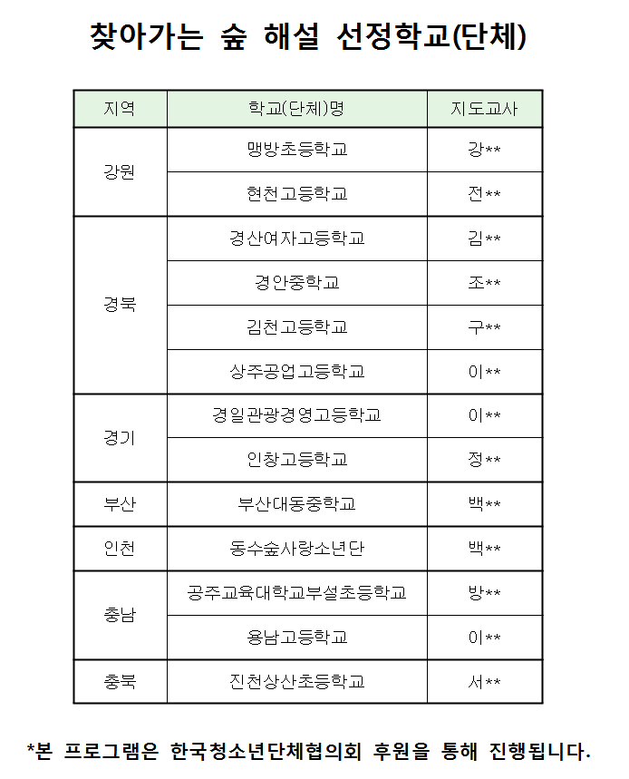 | [공지] 찾아가는 숲 해설 프로그램 선발확정 안내 |