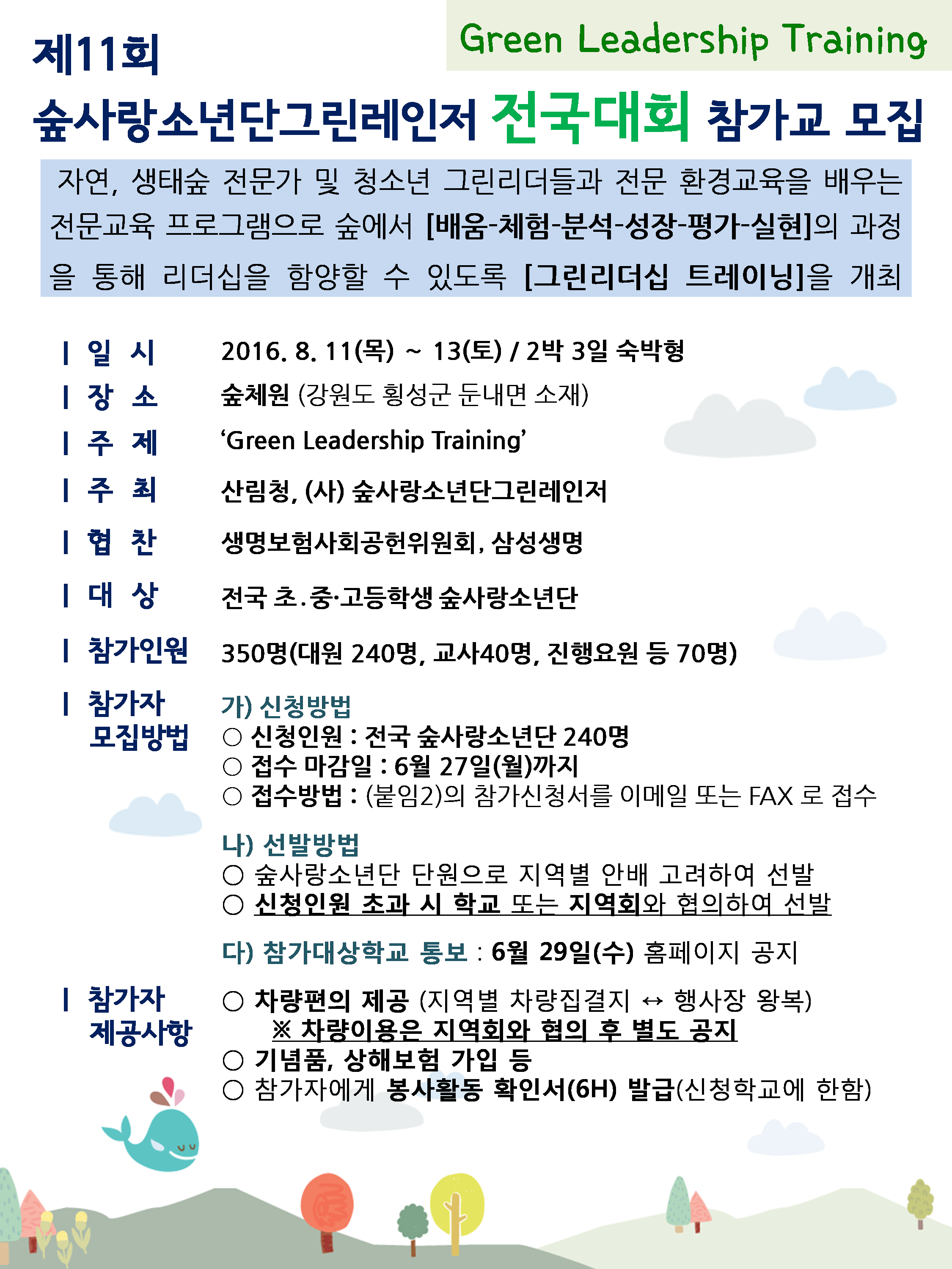 제11회 숲사랑소년단 전국대회 [그린리더십트레이닝] 참가교 모집