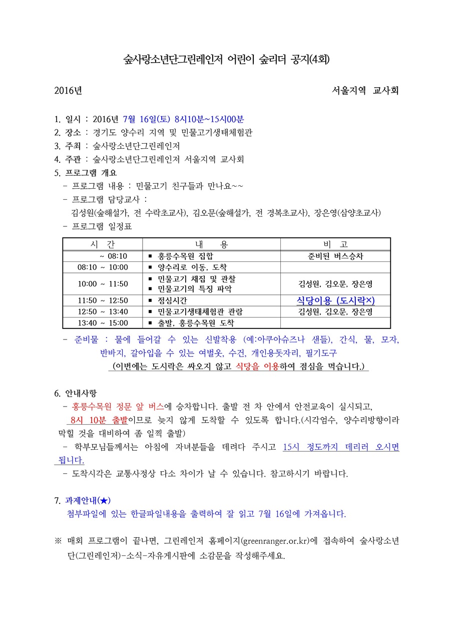 ⦁ 첨부파일 공지) 어린이숲리더_4회 공지사항.pdf 4회_ 어린이숲리더 사전 과제.hwp
