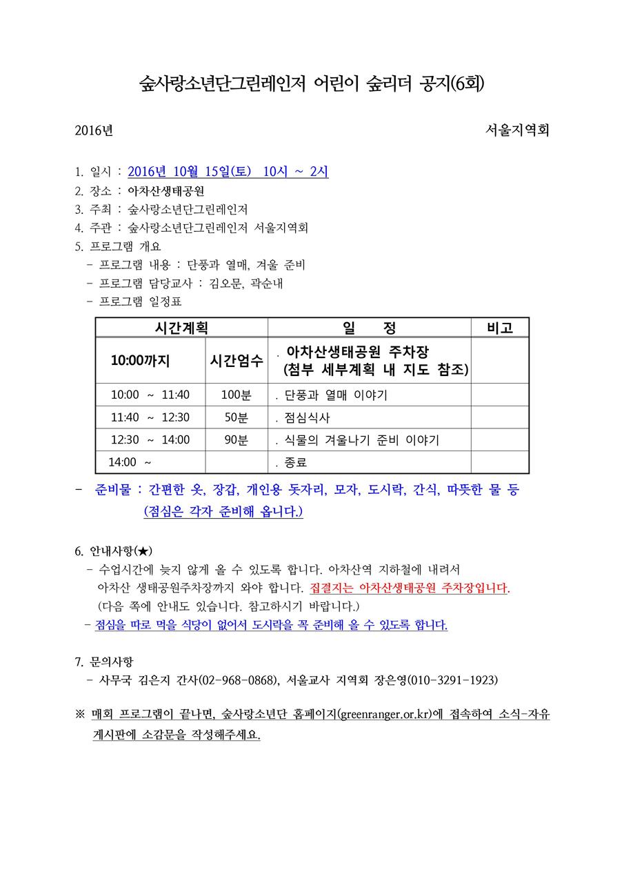 ⦁ 첨부파일 6회_어린이숲리더 공지사항.hwp