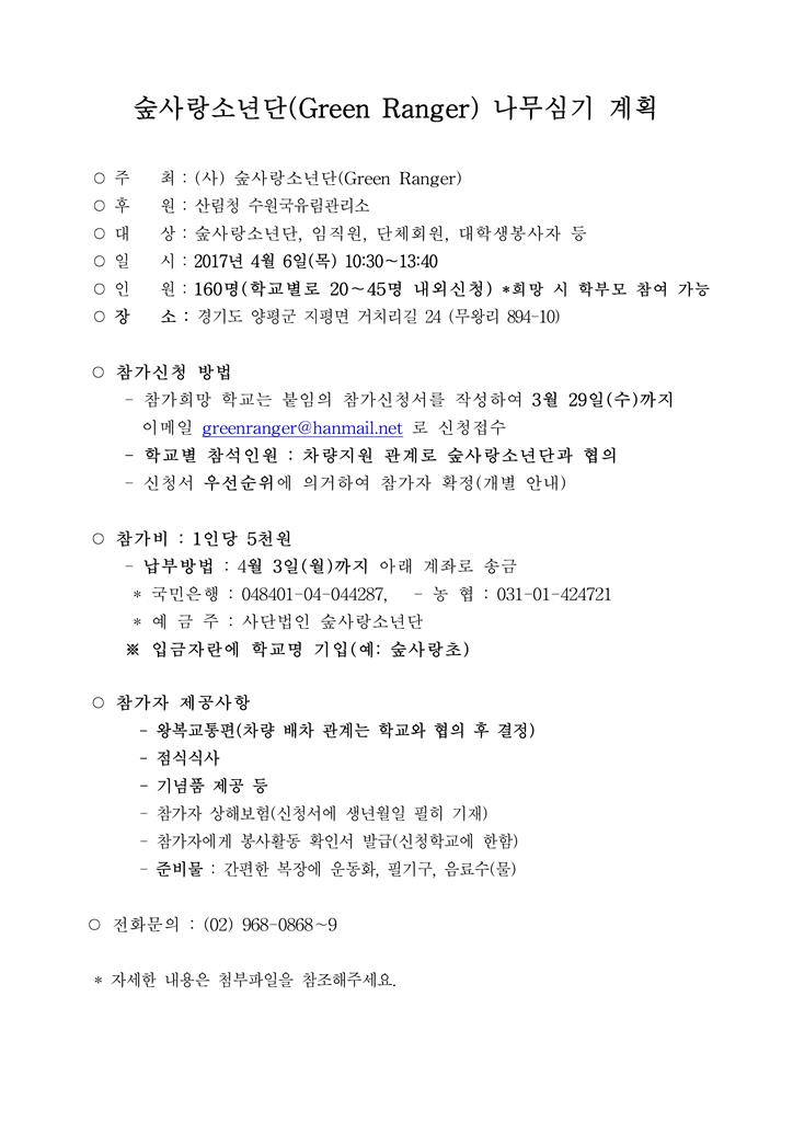 ⦁ 첨부파일 나무심기계획 (공문).hwp 2017 나무심기 계획서 및 참가신청서.hwp