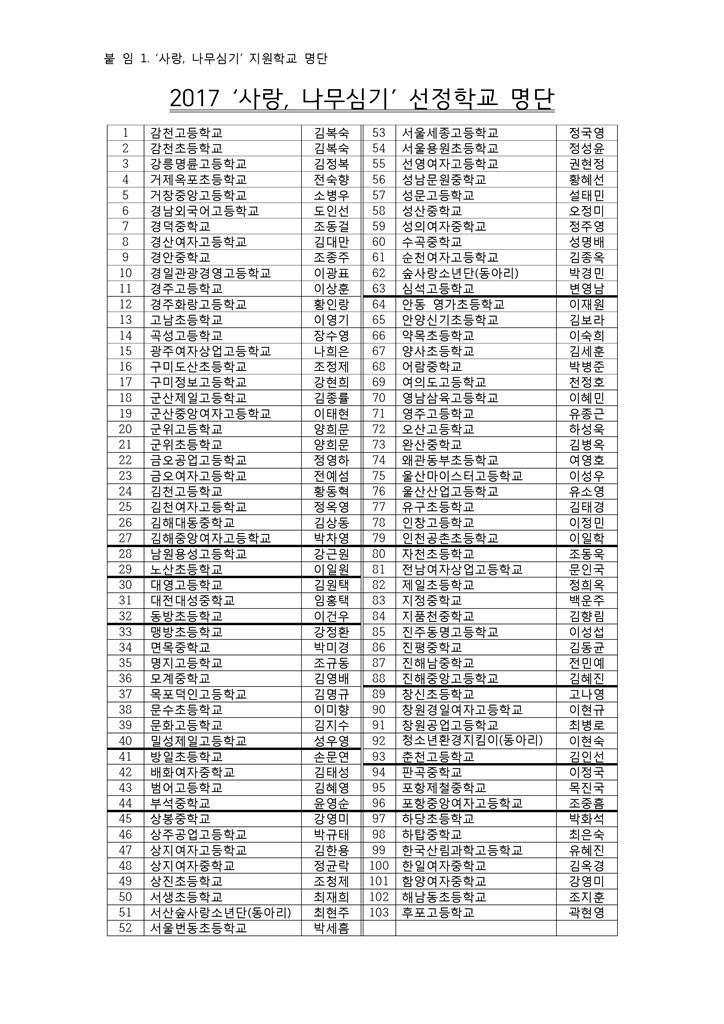 | '사랑, 나무심기' 선정학교 안내 |